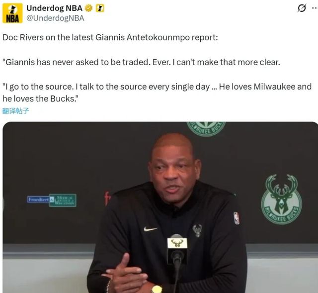 里弗斯:字母哥从未申请交易 我每天与“消息源”沟通