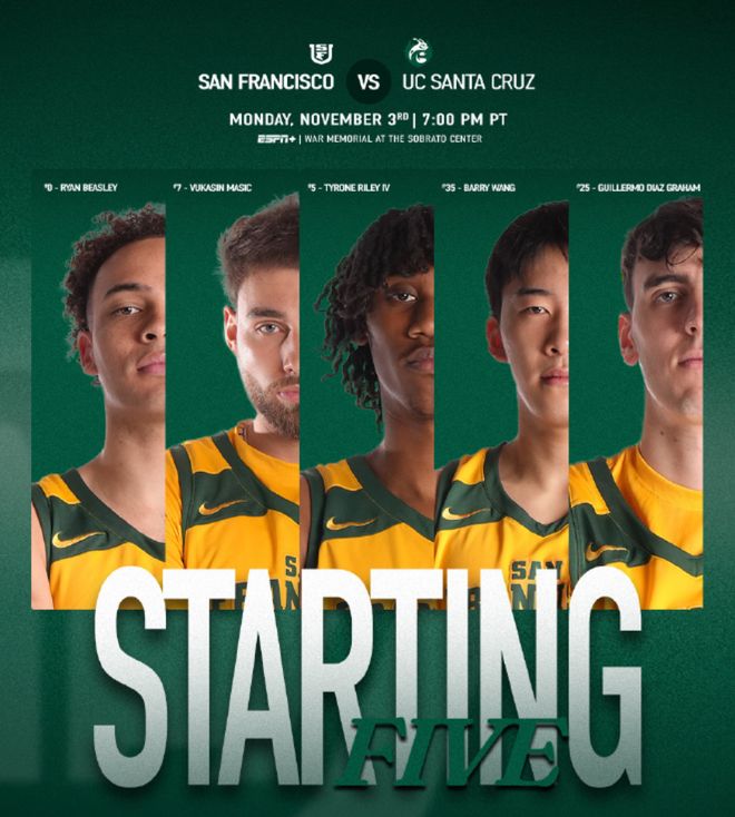 结束了两场季前热身赛,旧金山大学男篮今天迎来常规赛首秀,对阵的是来自三级联盟的弱旅加州大学圣克鲁兹分校的男篮,他们轻松地以98比53大胜45分。