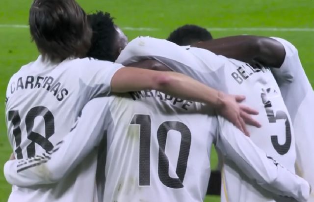 下半场,姆巴佩又在前场左侧接球,随后起脚远射破门,帮助球队锁定胜局。这位26岁的法国巨星,本赛季15场西甲已经打进16球,他个人的进球数,几乎是全队的一半,可以说现在的姆巴佩,就是皇马前场唯一的大腿,他的地位无可撼动。