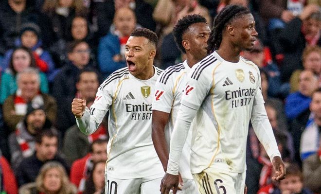 下半场易边再战。第55分钟,阿诺德受伤被换下场,劳尔-阿森西奥替补上场。4分钟后,姆巴佩又进球了!姆巴佩在禁区外轰出一脚世界波,皮球钻入球门左侧。姆巴佩真是踢疯了,独造3球,包括2进球1助攻。第81分钟,巴尔韦德禁区弧顶远射,被扑了出去。最终,皇马3-0横扫毕尔巴鄂竞技。