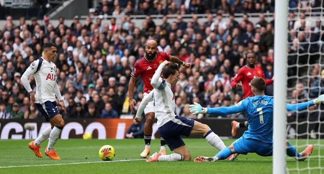 第62分钟热刺中场抢断后,第一时间推反击,约翰逊虽然单刀破门,但越位在先导致进球被取消,狂攻不止的热刺,终于在第84分钟扳平比分,替补登场的特尔,禁区内转身抽射让拉门斯无可奈何,将比分追至1平,起势的热刺在伤停补时第91分钟反超比分,奥多贝尔大禁区外开炮,理查利森头球一蹭,将比分改写为了2-1,但曼联也没有放弃,德利赫特最后时刻的绝平进球,将比分定格为了2-2。