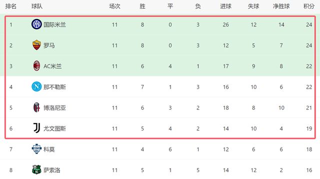 意甲最新积分榜:国际米兰豪取3连胜登顶,那不勒斯连续3场不胜!